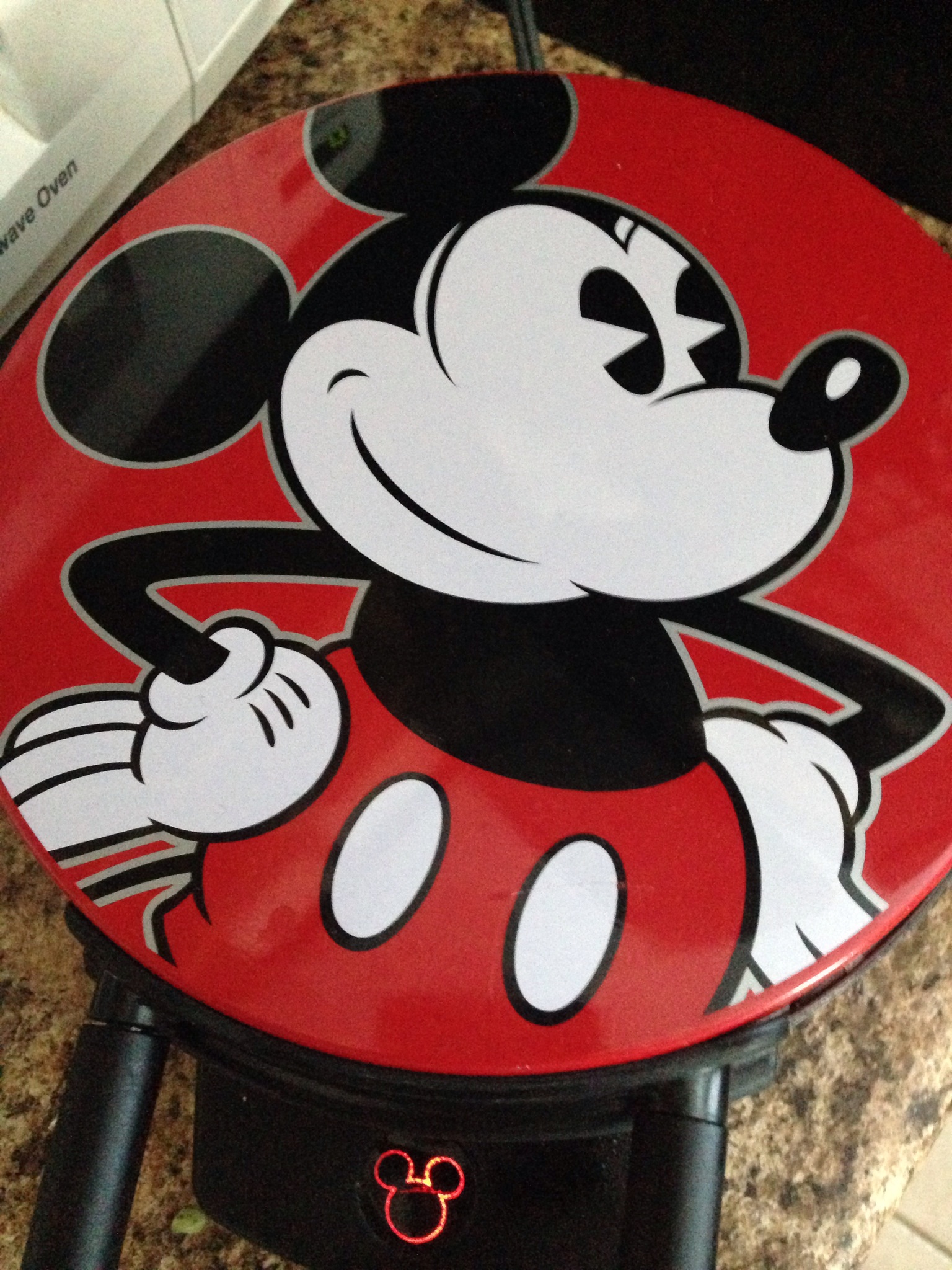 We are Disney freaks. No way around it. I’ve been an annual passholder at Disneyland for 13 years, my husband used to work in Downtown Disney, and when we haven’t gone to Disneyland in two weeks, the babies and I watch YouTube videos of the rides at Disneyland! So! Imagine my elation when I was at CVS to buy nail polish remover and found a Mickey Mouse waffle iron on CLEARANCE! $7.00 to ensure my kids will eat anything I put in it? Of course.